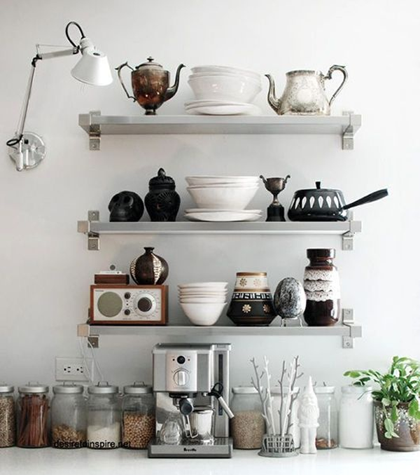 隔板可以是眾多置物架中,最最最普通的一種了。這種置物架常用在廚房里,鍋碗瓢盆、杯子、洗凈的水果都可以放在上面,幫你收納得妥妥帖帖,因為有一定的高度,家里有小朋友也不怕!