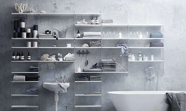 浴室里,這種框架的設計,方便了毛巾、沐浴乳等瓶瓶罐罐的放置。但是要注意這種置物架的選材,因為長時間在濕潤的地方,所以要選防水性好,抗氧化的材料。