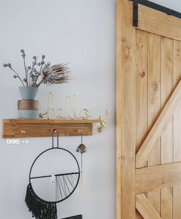 運用吊掛的方式擺放的置物架,非常的方便安放。只需一顆釘入墻壁的釘子就可以了。這種置物架的裝飾性是很強的。簡單的隔板,樸素的麻繩,讓整個置物架充滿了清新的自然之氣。