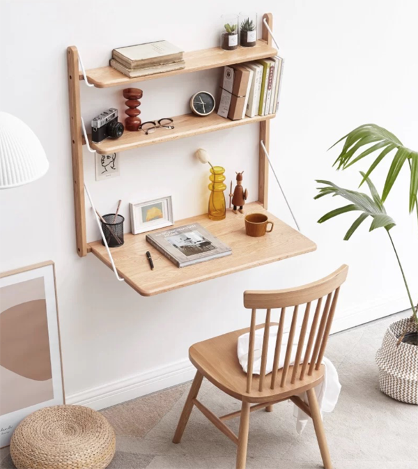 這種折疊式的置物架,可以說是小戶型的福音了。不占用空間,可以放置書本等物件,還可以當作小書桌使用。
