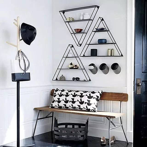 這種置物架非常常見,通透性比較強,在置物的時候也不會阻擋視線,反而會讓空間在視覺上有一種擴大的效果。在大戶型的裝修中,這種置物架通常還會作為展示架。以它們的簡來烘托擺件的精美。