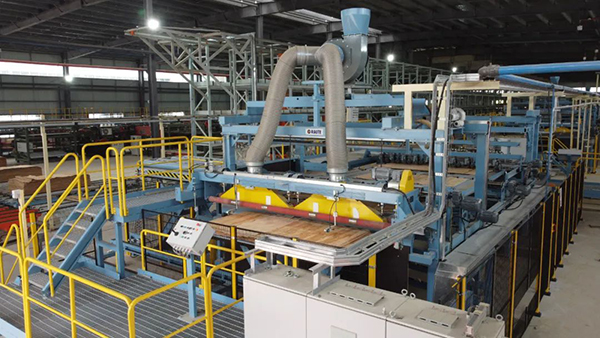 我國自主研發(fā)的人造板砂光鋸切生產(chǎn)線已到達(dá)國際先進(jìn)的水平。(中國林業(yè)機(jī)械協(xié)會供圖)