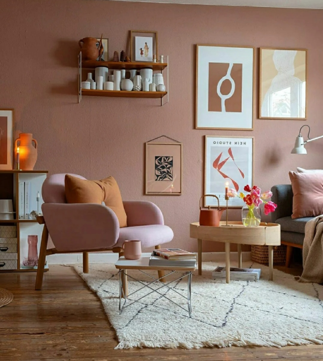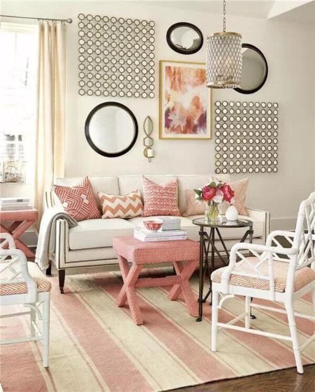 將櫻花粉應(yīng)用于家居裝飾中,就像把春天的甜美溫馨搬進(jìn)了家中,連空氣中都是甜甜的味道。粉色的臥榻、 小圓凳和抱枕,給人甜甜暖暖的感覺。