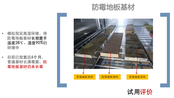 ▲普通地板與大亞防霉地板基材的對比實(shí)驗(yàn)