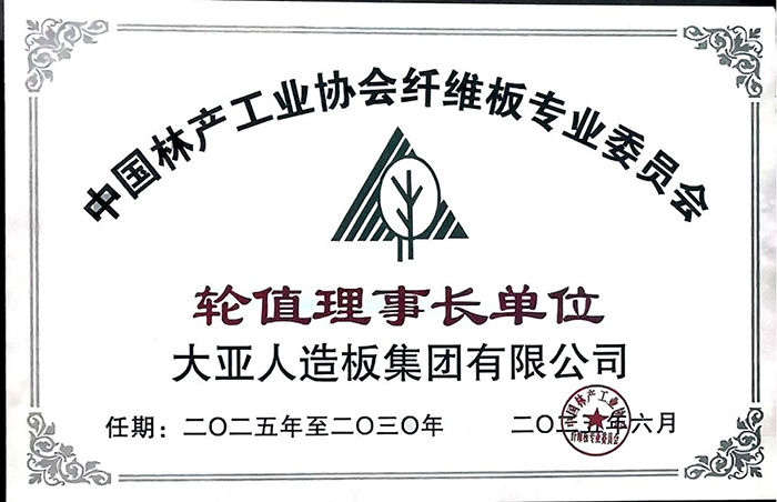 2025年6月26日“中國林產(chǎn)工業(yè)協(xié)會纖維板專業(yè)委員會第七屆會員代表大會”在山東濟寧盛大召開,會議審議通過《中國林產(chǎn)工業(yè)協(xié)會纖維板專業(yè)委員會第六屆理事會工作報告》和《中國林產(chǎn)工業(yè)協(xié)會纖維板專業(yè)委員會管理辦法》,會議選舉并產(chǎn)生了“中國林產(chǎn)工業(yè)協(xié)會纖維板專業(yè)委員會第七屆理事會”,大亞人造板集團有限公司當選第七屆輪值理事長成員單位,丁功慶先生當選第七屆輪值理事長。